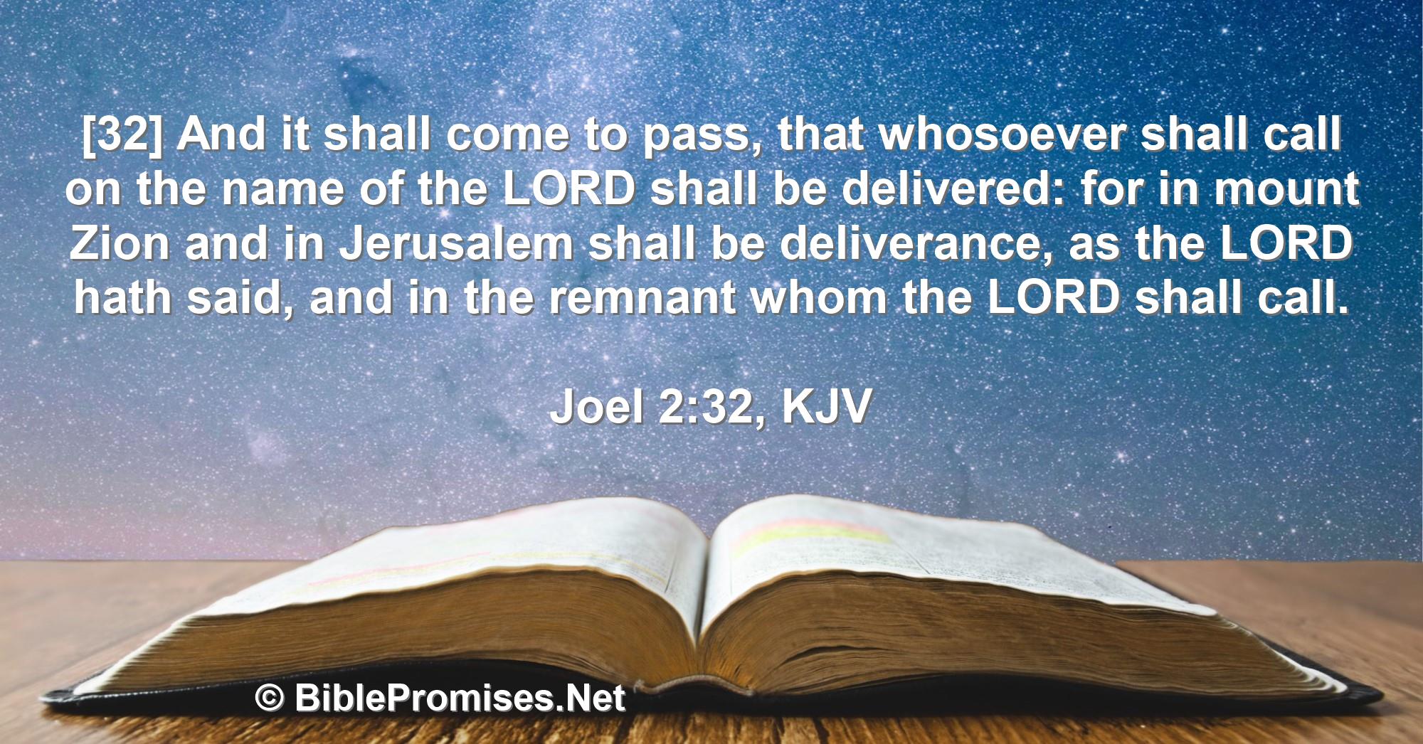 [32] And it shall come to pass, that whosoever shall call on the name of the LORD shall be delivered: for in mount Zion and in Jerusalem shall be deliverance, as the LORD hath said, and in the remnant whom the LORD shall call.