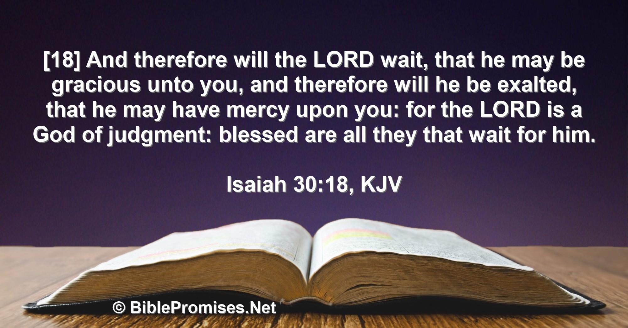 [18] And therefore will the LORD wait, that he may be gracious unto you, and therefore will he be exalted, that he may have mercy upon you: for the LORD is a God of judgment: blessed are all they that wait for him.