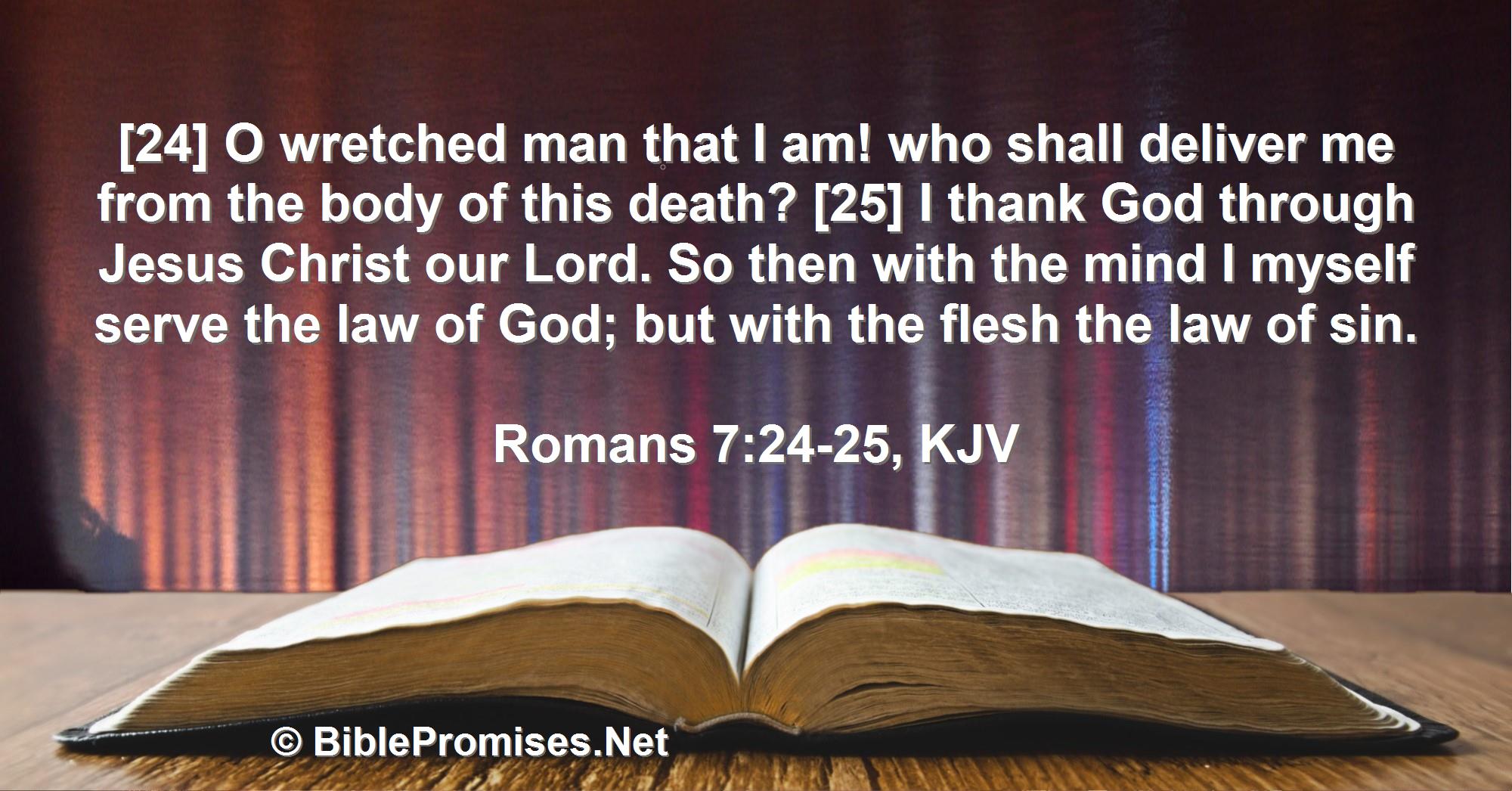 [24] O wretched man that I am! who shall deliver me from the body of this death? [25] I thank God through Jesus Christ our Lord. So then with the mind I myself serve the law of God; but with the flesh the law of sin.