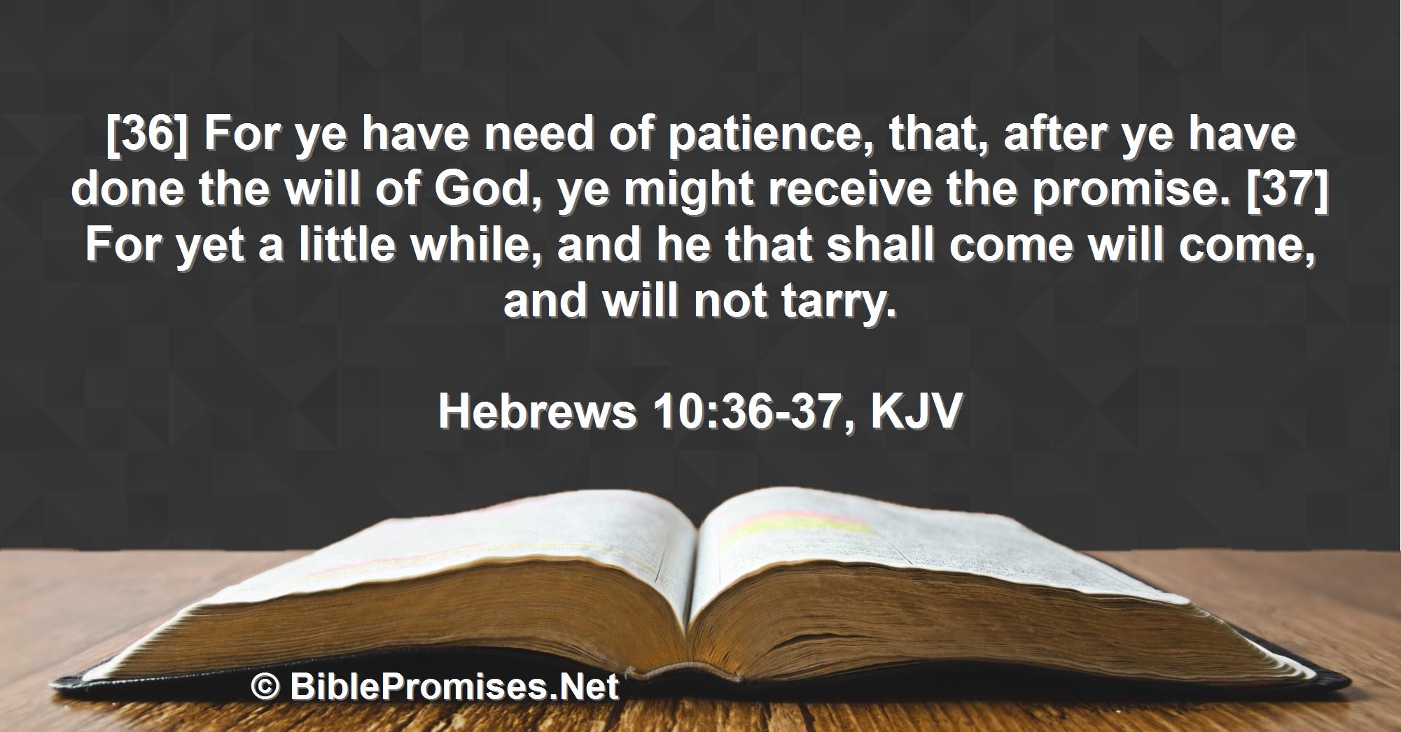 [36] For ye have need of patience, that, after ye have done the will of God, ye might receive the promise. [37] For yet a little while, and he that shall come will come, and will not tarry.