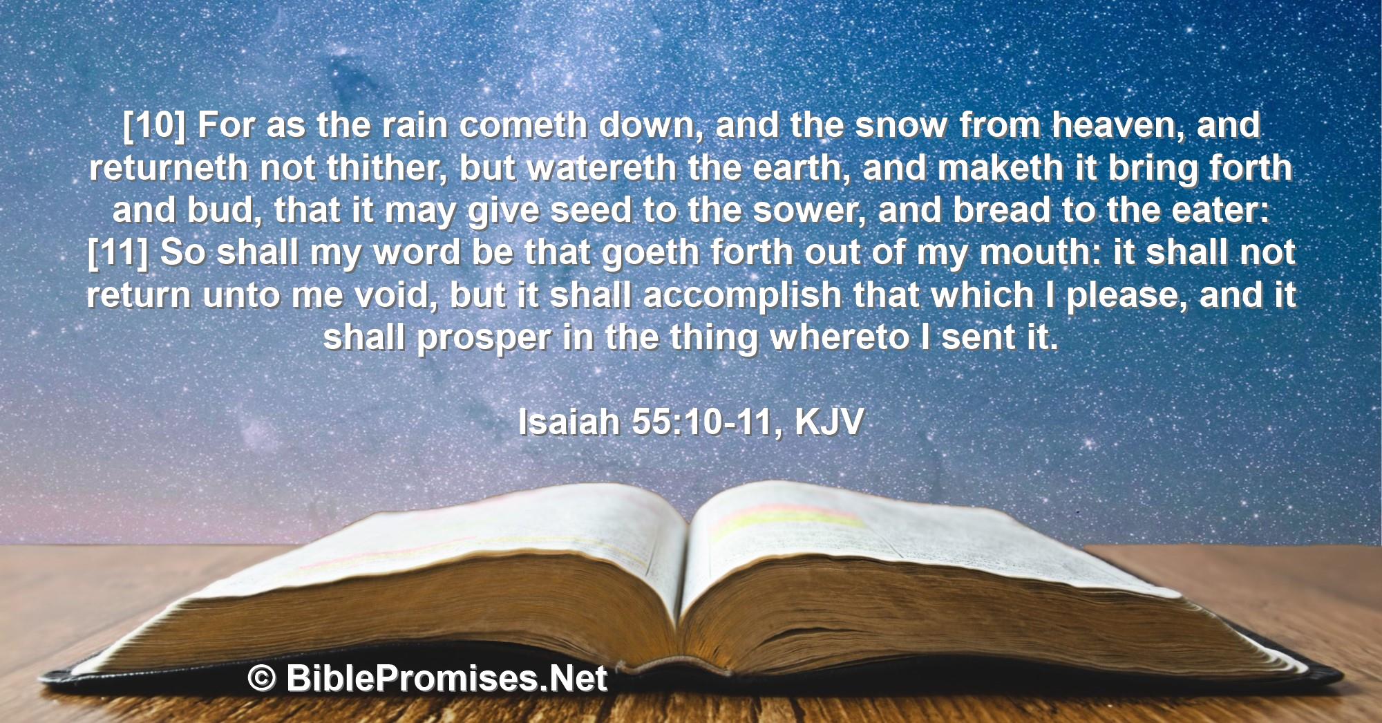 [11] So shall my word be that goeth forth out of my mouth: it shall not return unto me void, but it shall accomplish that which I please, and it shall prosper in the thing whereto I sent it.
