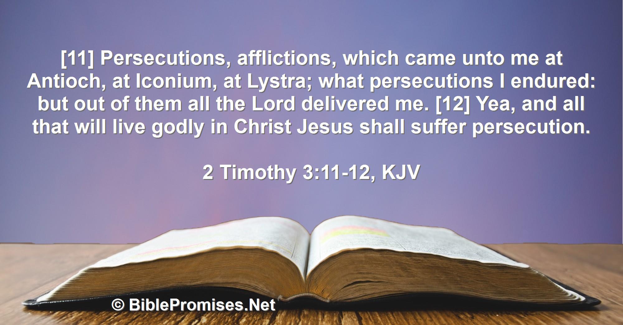 [11] Persecutions, afflictions, which came unto me at Antioch, at Iconium, at Lystra; what persecutions I endured: but out of them all the Lord delivered me. [12] Yea, and all that will live godly in Christ Jesus shall suffer persecution.