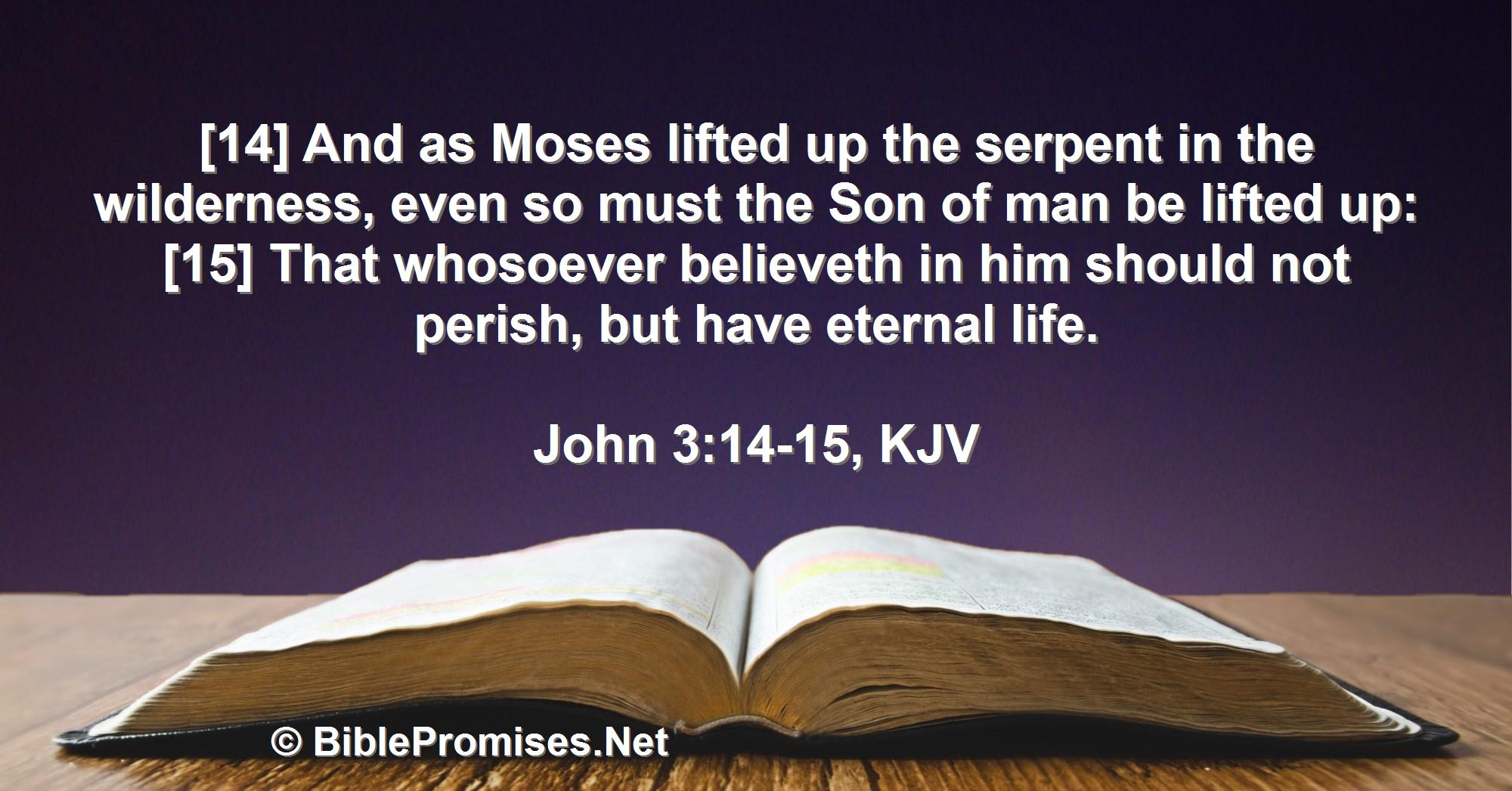 [14] And as Moses lifted up the serpent in the wilderness, even so must the Son of man be lifted up: [15] That whosoever believeth in him should not perish, but have eternal life.