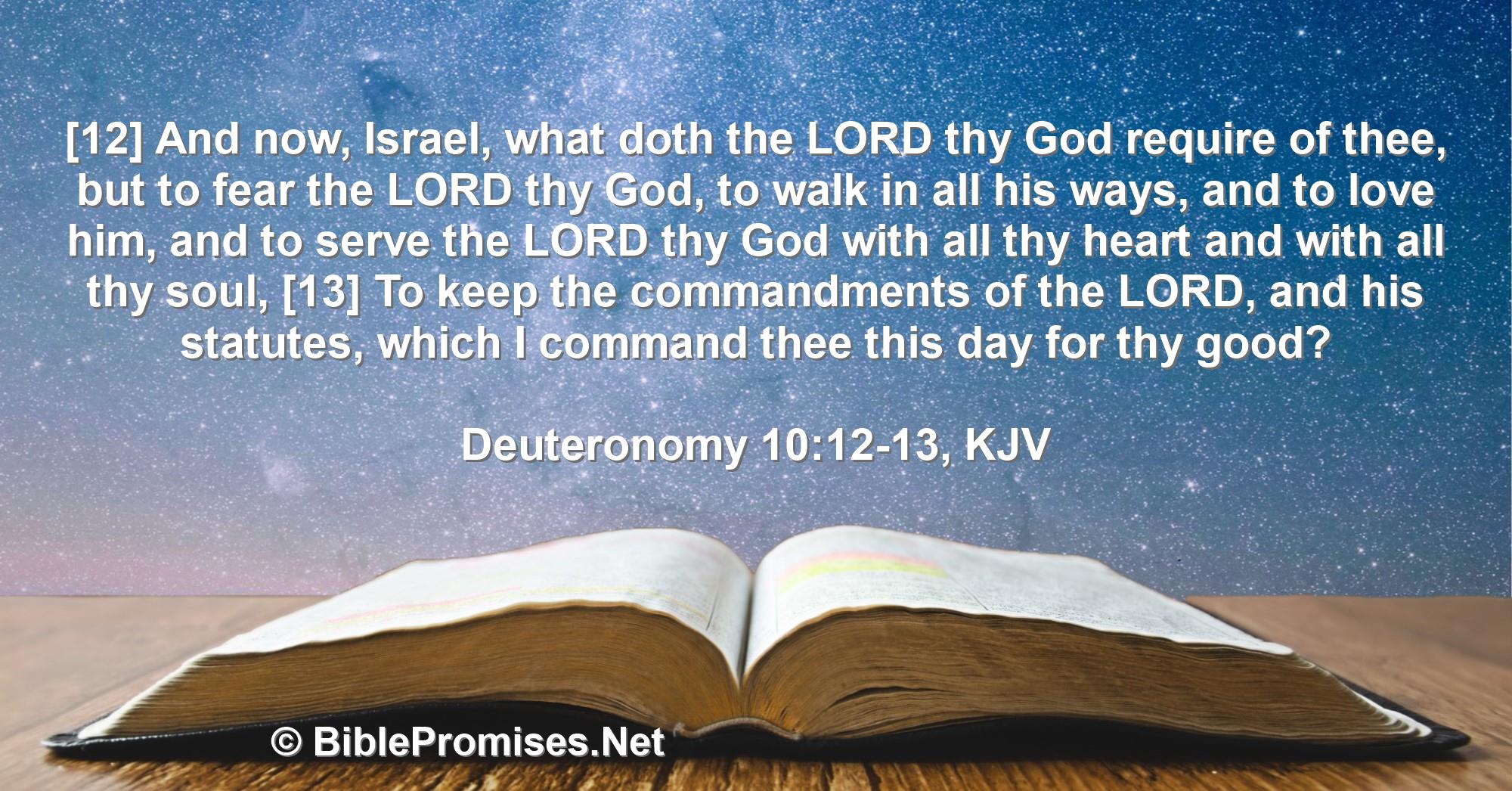 Bible, promise, Lord, God, require, fear, walk, his, ways, love, him, serve, with, all, heart, soul, keep, commandments, statutes, for, thy, good