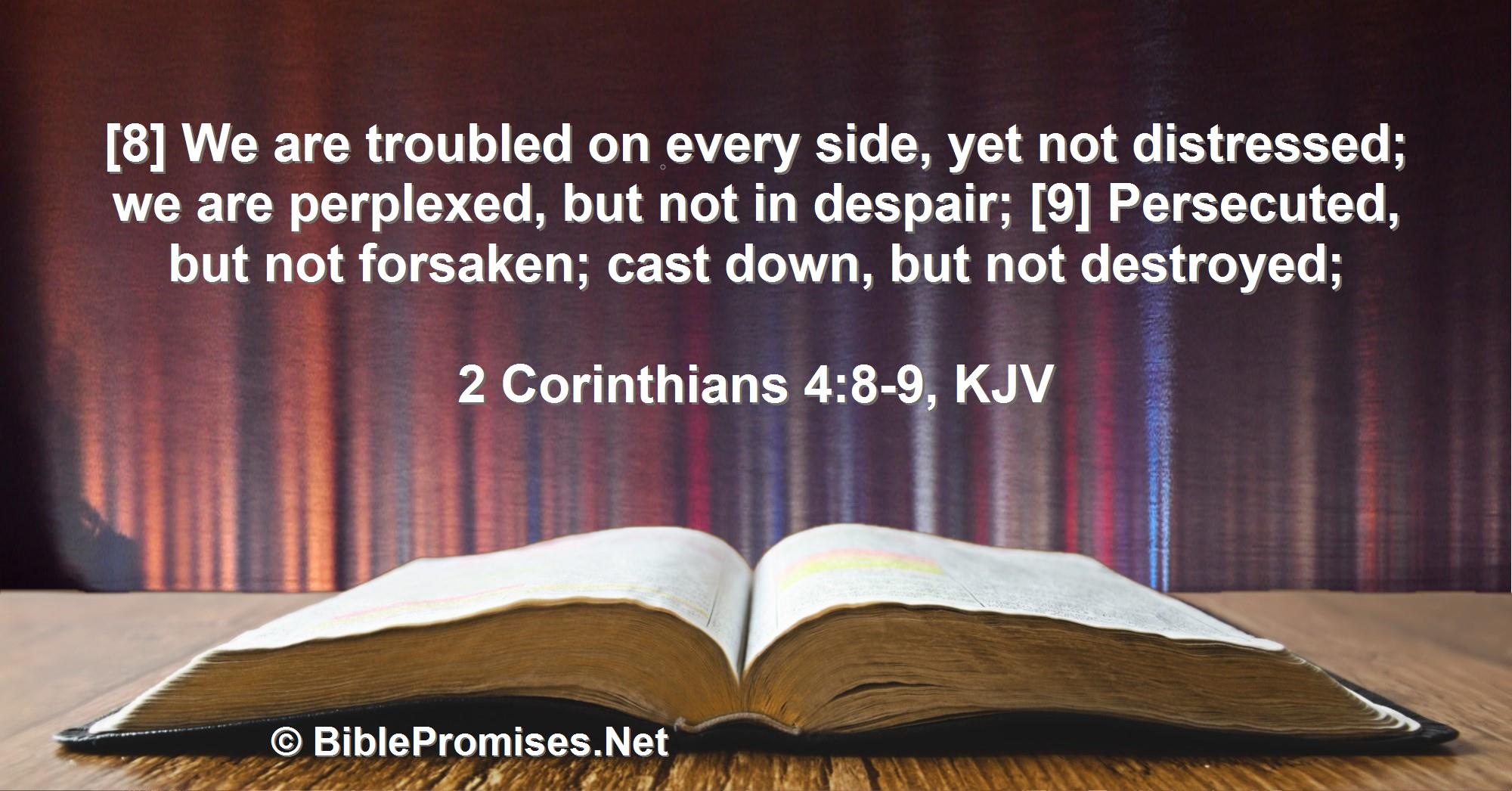 [8] We are troubled on every side, yet not distressed; we are perplexed, but not in despair; [9] Persecuted, but not forsaken; cast down, but not destroyed;